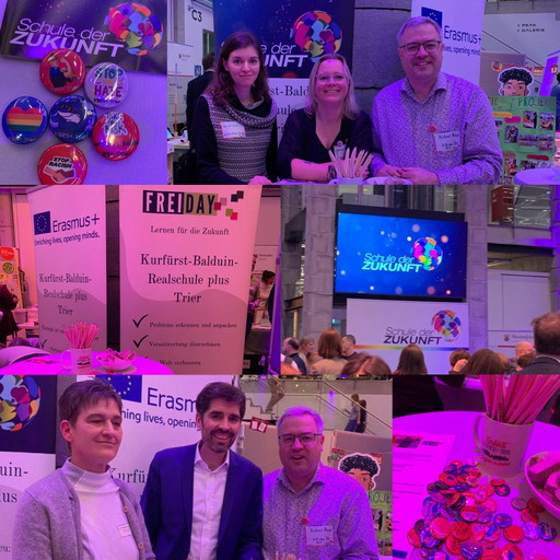 Wir waren mit einer Delegation zum Zukunftsforum der Schulen der Zukunft nach Mainz. Diesmal wurde dieses Forum im Rahmen einer Bildungsmesse ausgetragen. Bei netten Gesprächen konnten wir unsere Konzepte wie Lernbüro oder FREIDay vorstellen. Auch die Vernetzung mit anderen Schulen ist wichtig, um die Schulentwicklung weiter voranzubringen. Der Bildungsminister hatte ebenfalls wieder viel Freude mit uns.