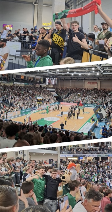 Und wir hatten über ein Volksfreund-Projekt Karten gewonnen! Eine bunt gemischte Truppe aus Siebt- und Achtklässlern und ihren Lehrerinnen machte sich also auf den Weg in die Arena.