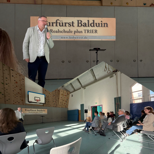 Mit Musik, Applaus und ganz viel Herz wurde am 07.11.2025 Michael Marx offiziell als neuer Schulleiter der Kurfürst-Balduin-Realschule plus Trier eingeführt. In der festlich geschmückten Turnhalle versammelten sich Schülerinnen und Schüler, Eltern, Kollegium und zahlreiche Gäste aus Stadt und Verwaltung, um diesen besonderen Moment gemeinsam zu feiern.
