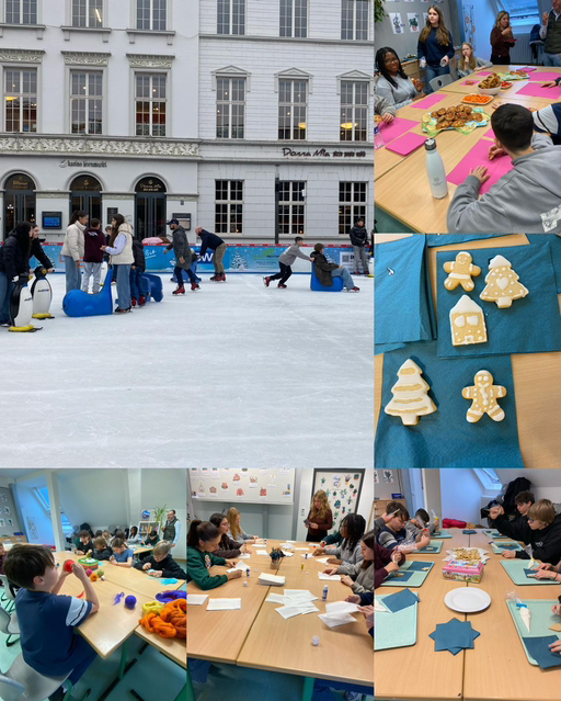 Am Mittwoch trafen wir uns in der Schule und verglichen die unterschiedlichen Weihnachtstraditionen in Deutschland und Portugal. Außerdem durften wir Lebkuchen verzieren, Weihnachtskugeln filzen und Sterne aus Butterbrottüten basteln. Zum Mittagessen gab es von der 7er HuS-Gruppe zubereitete Pizzabrötchen und Laugengebäck. Frisch gestärkt ging es dann zum Eislaufen.